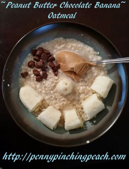 up 1-2 bananas, according to taste and the number of people eating (2 packs and 1 banana is okay for just me and my two small children). Mash it into the oatmeal, along with a generous dollop of peanut butter and a sprinkling of chocolate chips. Stir and serve. Delicious!! The bowl in the