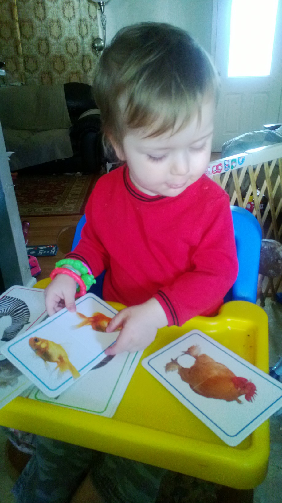 him once sister was to the cutting stage. I set him up in the high chair next to her, gave him the flash cards and had him hold each one up and I’d tell him the animal and animal sound. He’d repeat them to me with interest, and sometimes tell me what sounds they made before he even held them up to show me. This kept him stimulated and happily learning with sister instead of trying to steal all of her letters. 🙂