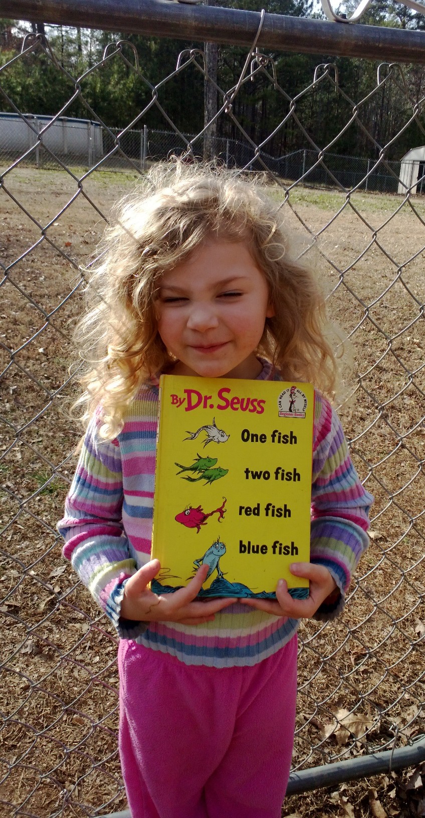 To finish up, we took a silly photo of my kindergartener, her project, and her loyal assistant! 🙂