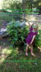 When my cucumbers started getting out of control, it never occurred to me to go buy something to use as trellises. My first instinct was to scour our property for things to be used. I have used pieces of leftover fencing, unused animal cages, tree limbs rigged up and many other myriad random objects to trellis or stake plants with. This year my objects were a wee bit on the creative side.
